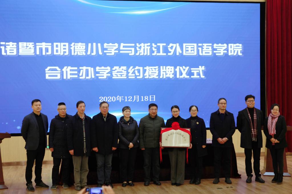 12月18日,学校与诸暨明德小学举行合作办学签约授牌仪式。开云官网与诸暨市教育体育局、诸暨市陶朱街道办事处签署三方协议。校纪委书记邱卫东出席并为“kaiyun开云官方附属小学明德小学”授牌,浙江大学原党委副书记周谷平、浙江大学教育学院院长方展画等出席仪式。