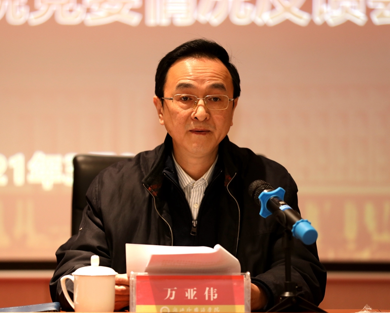 万亚伟提出了四点意见:一是进一步提高政治站位,建设人民满意大学。学院党委要深入学习贯彻习近平总书记关于高等教育的重要论述,坚持立德树人导向,培养社会主义合格建设者和接班人。科学谋划“十四五”规划,结合“浙外三地”战略,推进“实院强系”改革,进一步提升学科和专业建设水平。树牢以学生为中心的理念,不断提高学生的岗位适应度和市场竞争力。二是进一步推进全面从严治党,建设清廉校园。坚持“严”的主基调,落实落细全面从严治党各项举措,强化重点领域风险防控。加强监督执纪问责,提升发现问题的水平和能力。持续强化作风建设,提升服务意识。三是进一步夯实基础,建设高质量干部和人才队伍。切实发挥党委领导核心作用,加强班子自身建设,攻坚克难,破解制约学校发展的重点难点问题。统筹谋划人才发展战略,加大人才引进和培养力度,优化教师队伍结构。坚持抓基层打基础,选优配强院系负责人,强化干部队伍管理,加强基层党组织规范化建设。四是进一步强化巡视整改,建设服务浙江改革发展的高水平外语院校。进一步提高政治站位,自觉扛起整改主体责任,健全整改长效机制,确保整改工作管长远、见实效。