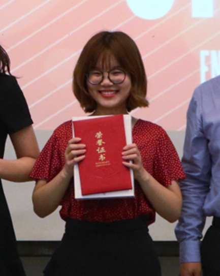 吴晓静,女,汉族,1999年6月出生,浙江温州人。现为英语语言文化学院2017级英语专业5班在校生。学习成绩优异,曾获浙江省政府奖学金、优秀学生一等奖学金、校三好学生等荣誉。英语专四成绩为优秀,考取BEC高级商务英语证书。