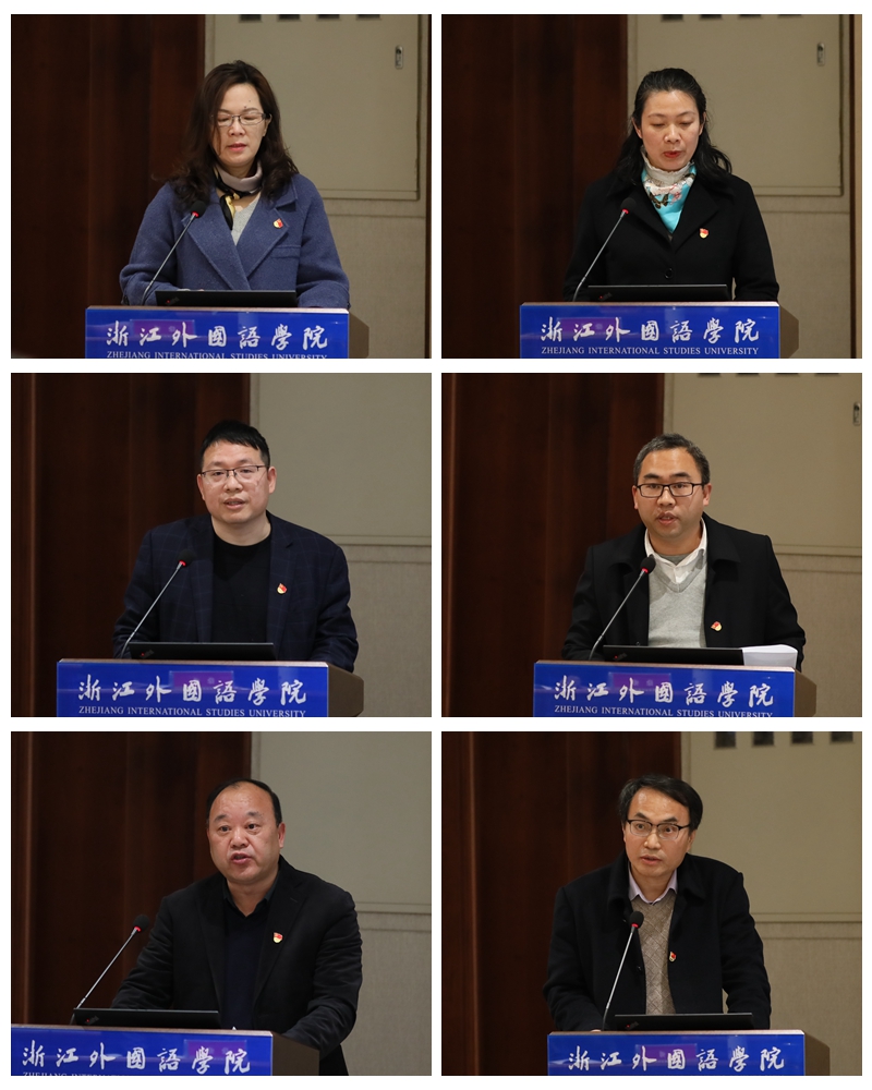 宣勇在点评中表示各基层党组织工作“特色鲜明,亮点突出。”英文学院持续深化学习教育,定制了“青年学子学青年习近平”学习教育三篇章,推动学习教育走深走实。在教工党支部持续推进课堂思政“党员先行”活动,汇编了教工党员课程思政案例集。东语学院持续探索党管人才改革,加大人才引进力度,改善了学院师资力量的学缘结构和整体水平。智库平台有效发挥咨政功能,教师科研成果获省领导批示。西语学院完善学院治理体系,制定《教师教学年度考核办法》等制度文件;从经费划拨等方面保障强“系”建设,着力提升系的治理能力。中文学院重视党支部书记培养,着力打造支部和系、师生党员和群众互相联动同频共振的工作机制;持续打造“红色宣讲团进校园”和“传统文化进社区”两个党建特色活动,做好专业和党建融合文章。经旅学院激发基层组织活力,落实“双带头人”要求,调整个别系主任,使系级领导更强更有力;积极开展院本研究,探索建立了学院特色的荣誉体系,营造了良好的学院氛围。教育学院开展“红色领航”计划,新生入党申请率提高;按照“整车”建设理念,凝练四个学科方向,制定了《学院学科建设五年规划》和《学院科研与学科建设资助计划》。跨境电商学院、科技学院注重发挥党建工作标杆院系、样板支部和“双带头人”工作室的示范作用,形成思政育人矩阵。党政同心促发展,跨境电子商务专业建设取得喜人成绩。艺术学院组织师生党员联动,开展以“艺”战“疫”系列活动,疫情期间,建设“艺起抗疫”思政课程群,将思政教育贯穿教育教学全过程。国际学院作为初创学院,以党建带院建,强化使命担当,加强建章立制,注重学院文化建设,努力打造初具学院辨识度的社会服务平台。马克思主义学院以党建引领学院治理,持续推进总支领导下的院长负责制,修订了《党政联席会议制度》等5项制度,完善学院决策议事规则。继教学院结合工作实际,开办“和山励志”思政教育讲坛,强化学生思想引领。应外学院以课程建设和专业研究方向建系立制,既突出了课程建设又有效推进了教师学术提升。体育部注重发挥学院党员先锋模范作用,将学院目标任务、重点工作、重点项目落实到党员干部。