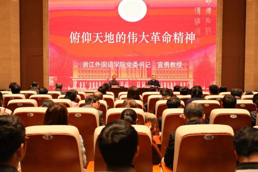 红船精神,大庆精神铁人精神,拓荒牛精神,浙江精神……专题党课上,宣勇以“俯仰天地的伟大革命精神”为题,用生动的事例讲述了中国共产党在新民主主义革命时期完成救国大业、在社会主义革命和建设时期完成兴国大业、在改革开放和社会主义现代化建设新时期推进富国大业、在中国特色社会主义新时代推进强国大业的伟大历程,讲述了中国共产党开天辟地、改天换地、翻天覆地、惊天动地的伟大壮举,阐释了中国共产党人的精神谱系。