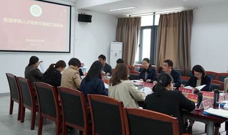 参会人员围绕学院人才培养方案的修订展开讨论。教务处、评估处、学院相关负责人、专业负责人等参加研讨。