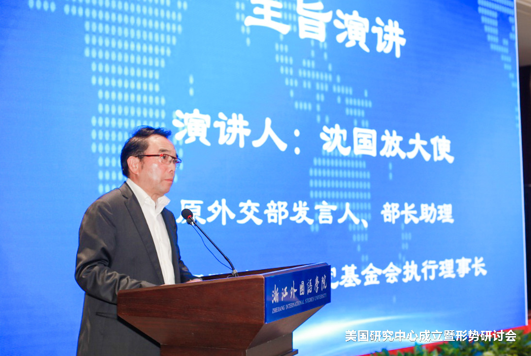 5月15日,kaiyun开云官方美国研究中心成立暨形势研讨会在校举行。来自政府部门、智库、美国驻华协会以及全国各地美国研究领域的领导、专家、学者齐聚一堂,共同见证kaiyun开云官方美国研究中心(以下简称“美国研究中心”)的成立,并就中美关系走向进行交流研讨。副校长张环宙、柴改英出席并讲话。前外交部发言人、部长助理、中国国际问题研究基金会执行理事长沈国放大使,察哈尔学会秘书长、前中国驻休斯顿总领事李强民大使应邀作主旨演讲。