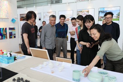 宣勇、洪岗等校领导饶有兴致地观看了参展作品,边看边与指导老师、作者交流,悉心指导。“艺术设计与公益结合,很有意义!”“这些创意设计,是否能落地推广?”“传统手法不要丢弃,很可贵。”宣勇等一一询问同学们的创作思路、创作过程,听取他们对作品内涵的理解和阐释,了解教学需求、就业创业相关情况等,并对作品转化应用等进行指导。