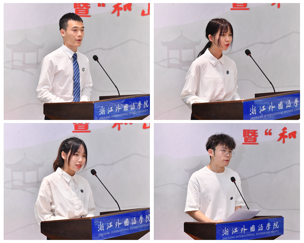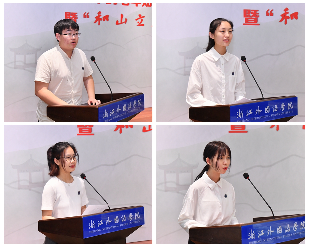 立志宣言环节,四位2020级学生代表作立志宣言,他们在浙外立下青春的志向、人生的志向,在这里敢于有梦,勇于追梦,勤于圆梦。