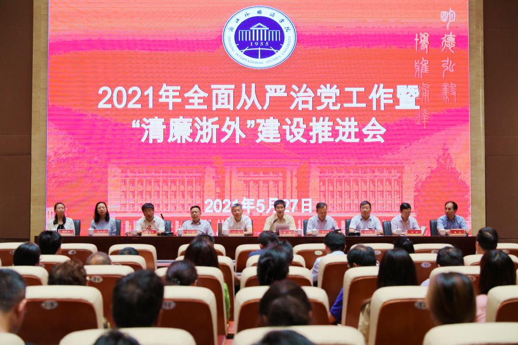 5月27日,学校召开2021年全面从严治党工作暨“清廉浙外”建设推进会。党委书记宣勇出席并作工作部署,校长洪岗主持会议,纪委书记邱卫东从纪检监察角度提出工作要求。校党政领导班子成员出席。