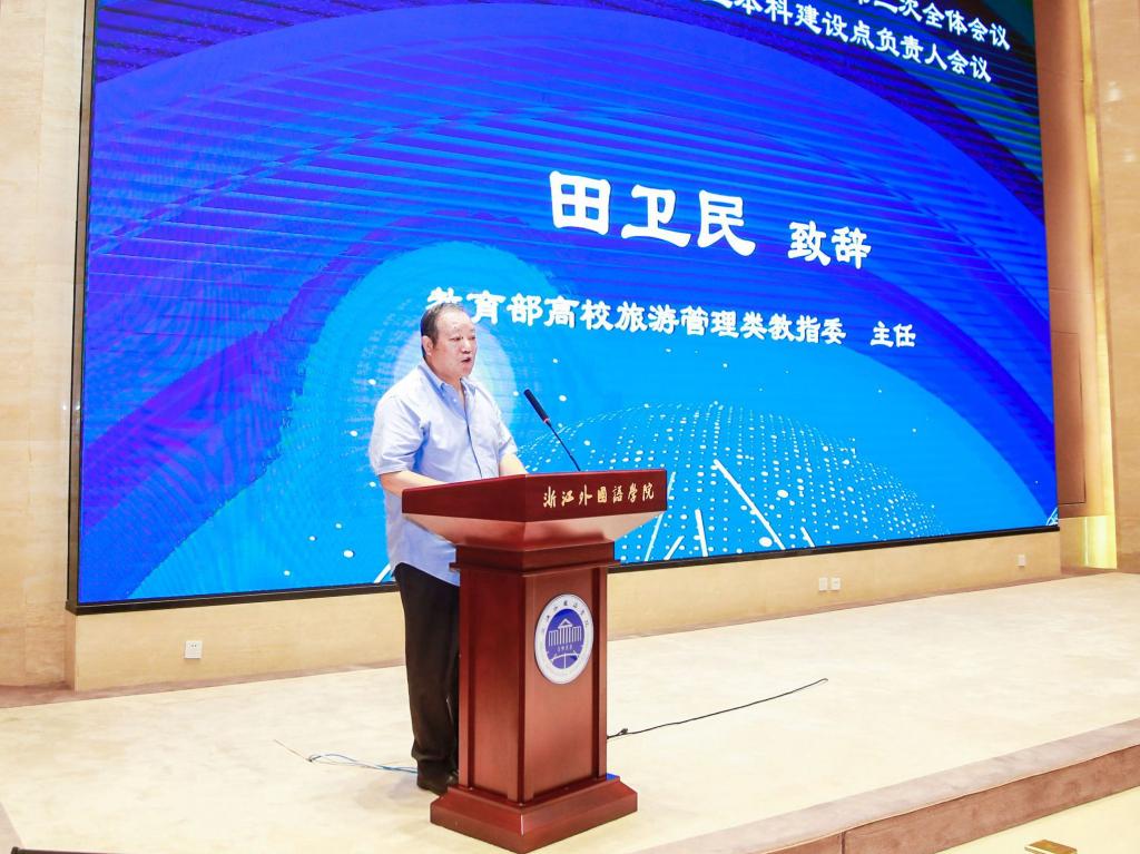主旨演讲环节,田卫民作题为《新文科背景下旅游管理类一流专业建设》的主旨报告,他从近年相关国家政策、旅游管理类一流专业推荐情况、专业建设内涵等方面进行介绍,对旅游管理类学科的定位、内容、标志、认证一一做详细解读。