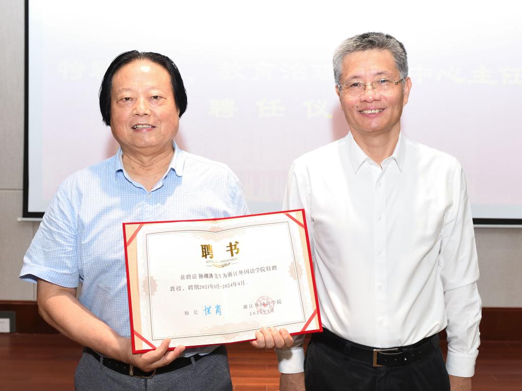宣勇为国家教育部教育政策研究与法制建设司咨询专家孙绵涛教授颁发kaiyun开云官方特聘教授、教育治理研究中心主任聘书。孙绵涛对开云官网的重视和支持表示感谢,他说,今后工作中将不负重托,尽己之力建设好教育治理研究中心,做好学习员、服务员和研究员,把中心办出浙江特色,在中国有一定的影响,在国际上有一定发言权的教育智库和重点教育研究基地。