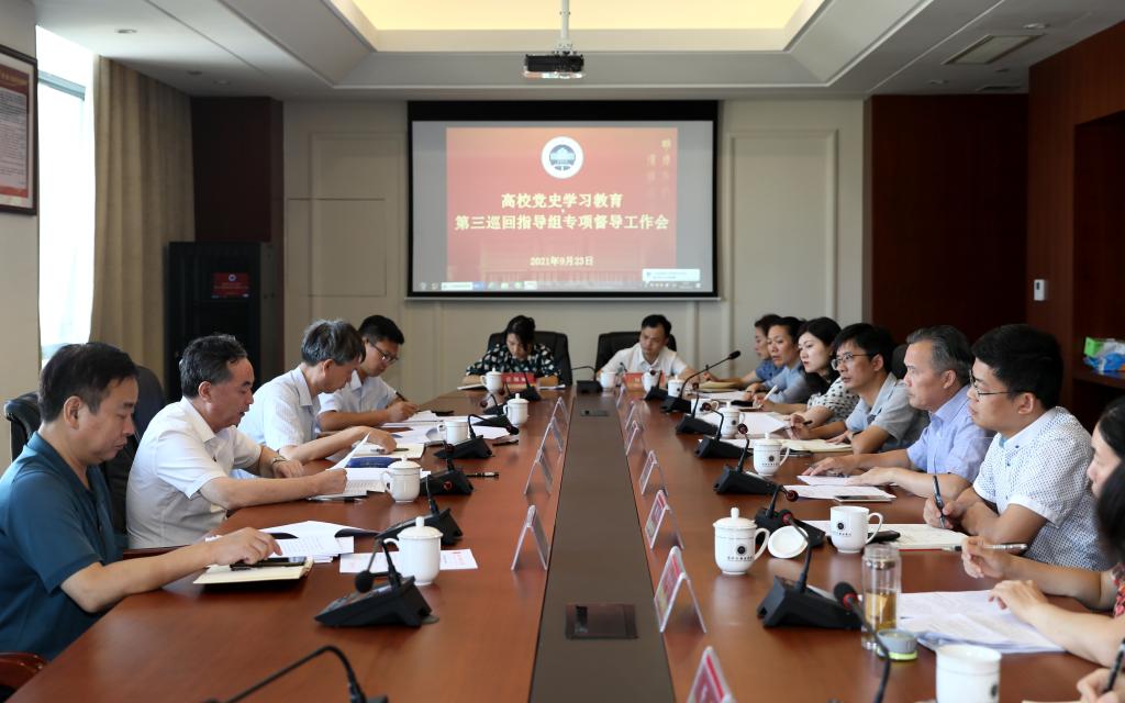 9月23日,高校党史学习教育第三巡回指导组来开云官网开展专项督导。指导组组长刘剑虹、副组长王登先,指导组成员出席会议。校党委副书记、党史学习教育领导小组副组长赵文波主持会议并作工作汇报。