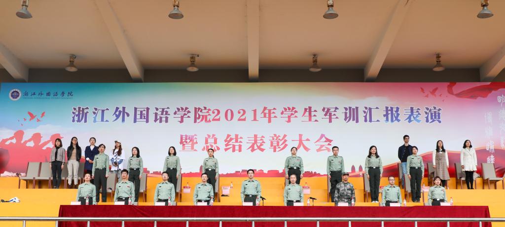秋色宜人,在同学们嘹亮的军歌声中,学校举行2021年学生军训汇报表演暨总结表彰大会。校长洪岗、党委副书记赵文波、副校长李安、解放军带队干部吴克武上校出席。副校长李安主持大会。