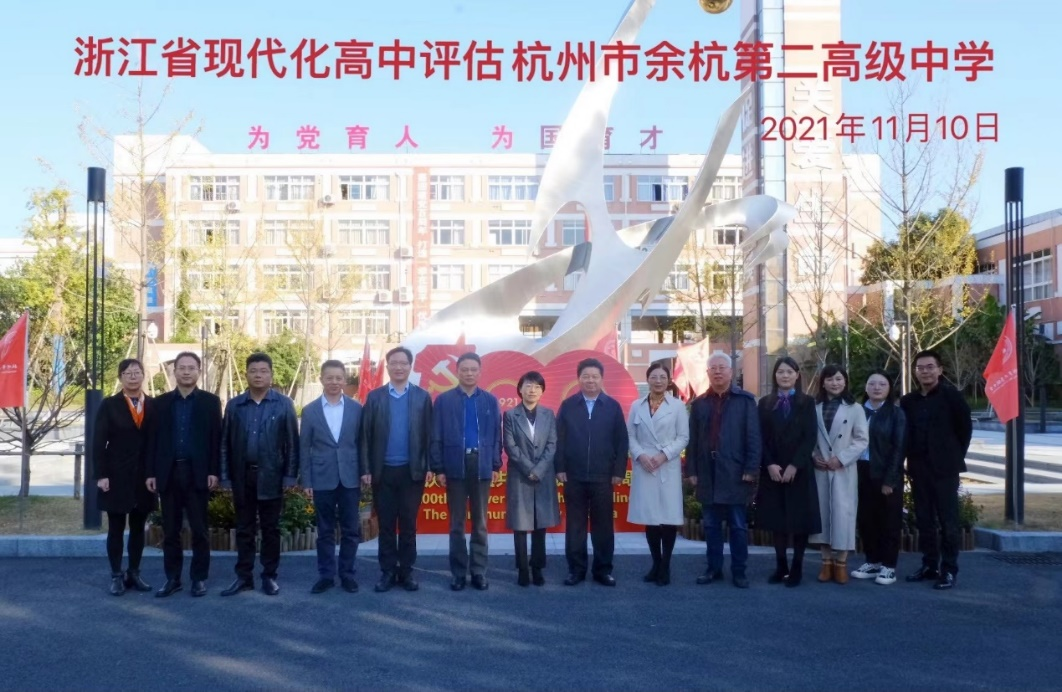 11月10日,浙江省教育厅一级巡视员、浙江省教育学会会长韩平赴杭州市余杭第二高级中学,视察指导省现代化高中督导评估工作,看望慰问专家组一行。
