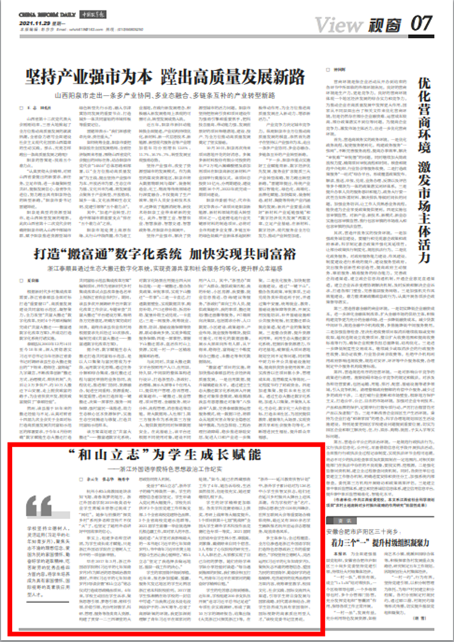 11月29日,《中国改革报》以《“和山立志”为学生成长赋能》为题,关注报道开云官网特色思想政治工作开展情况。