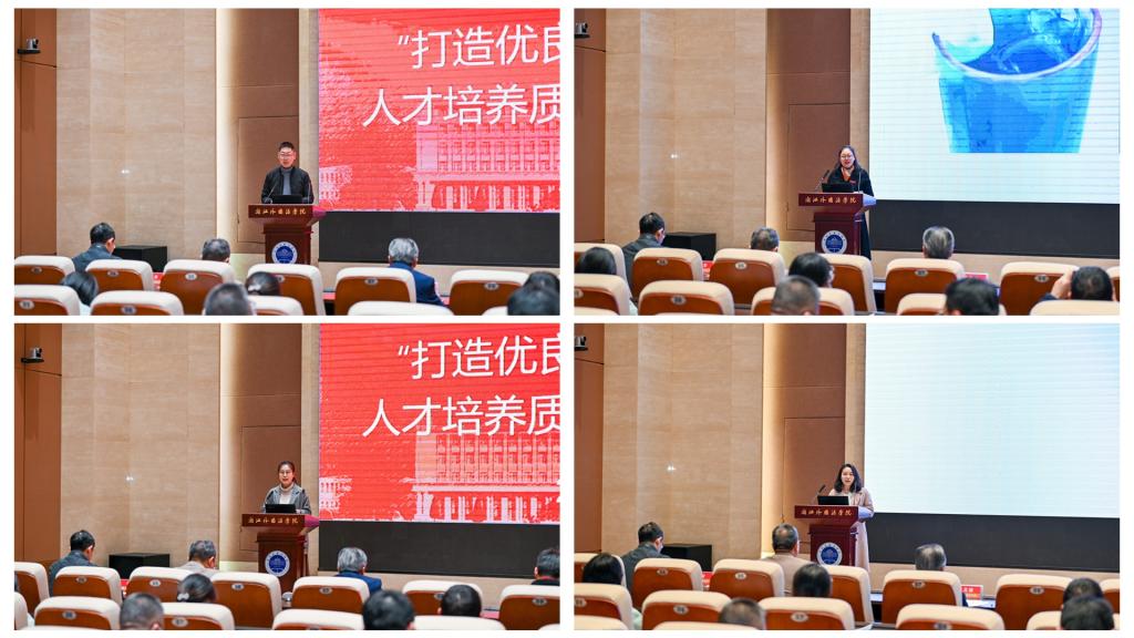 各学院院长、副书记代表、基层教学组织代表、教师代表、学生代表分别以“加强理论认识勇挑人才培养责任”“自觉扛起学风建设重任”“加强课程建设与课堂教研”“坚守课堂教学第一责任人重任”和“提高学风,担当学习主体责任”为主题进行发言。