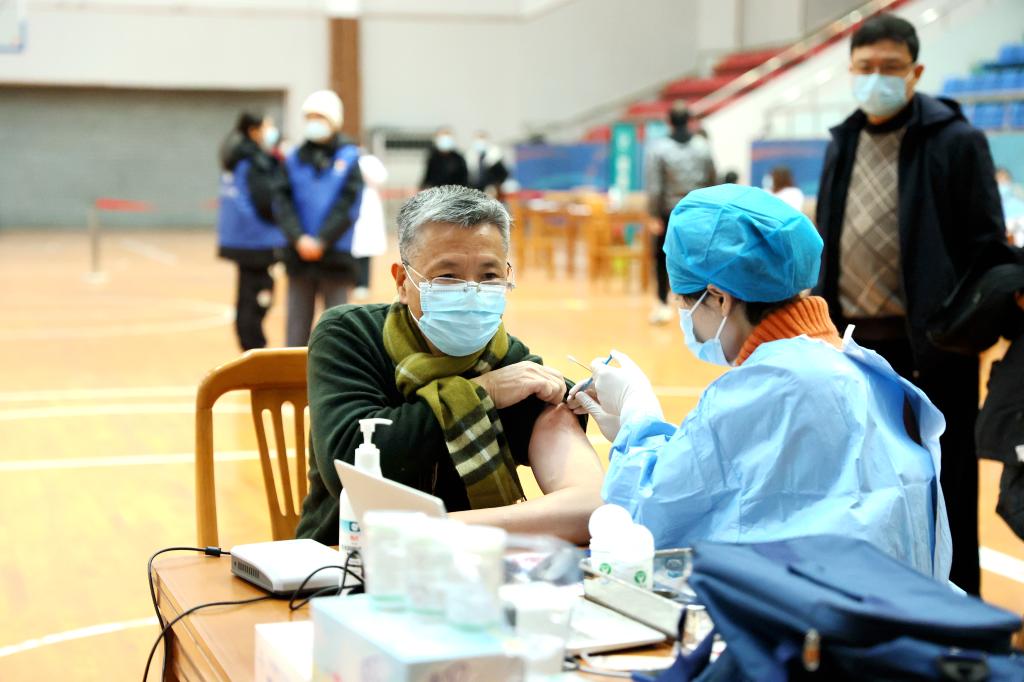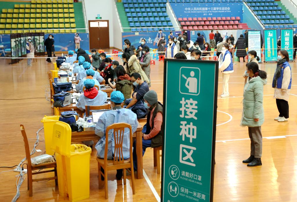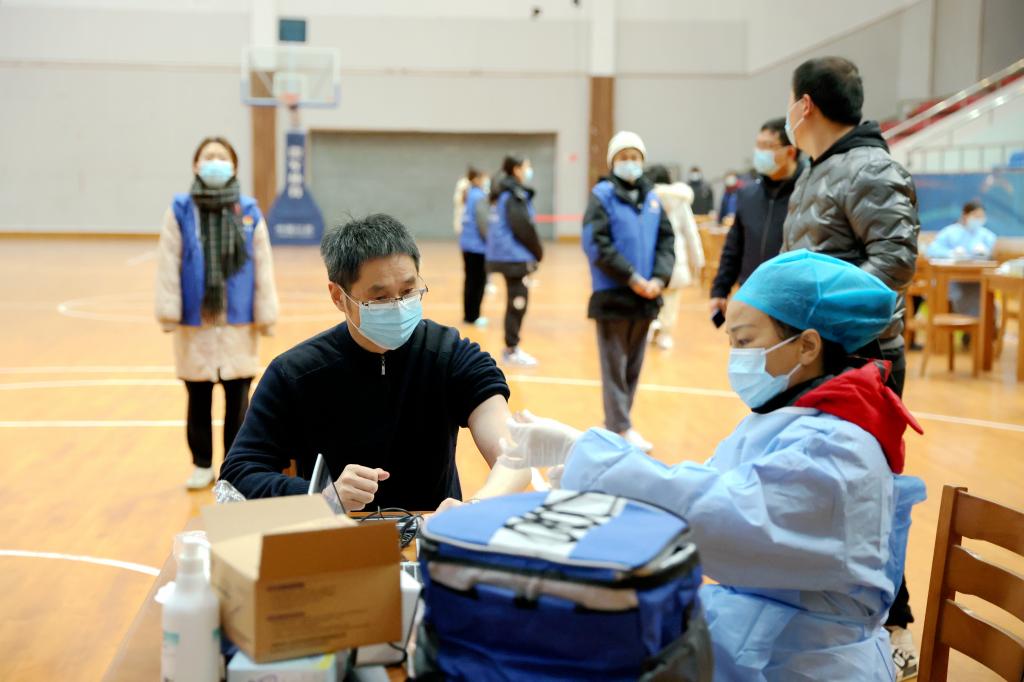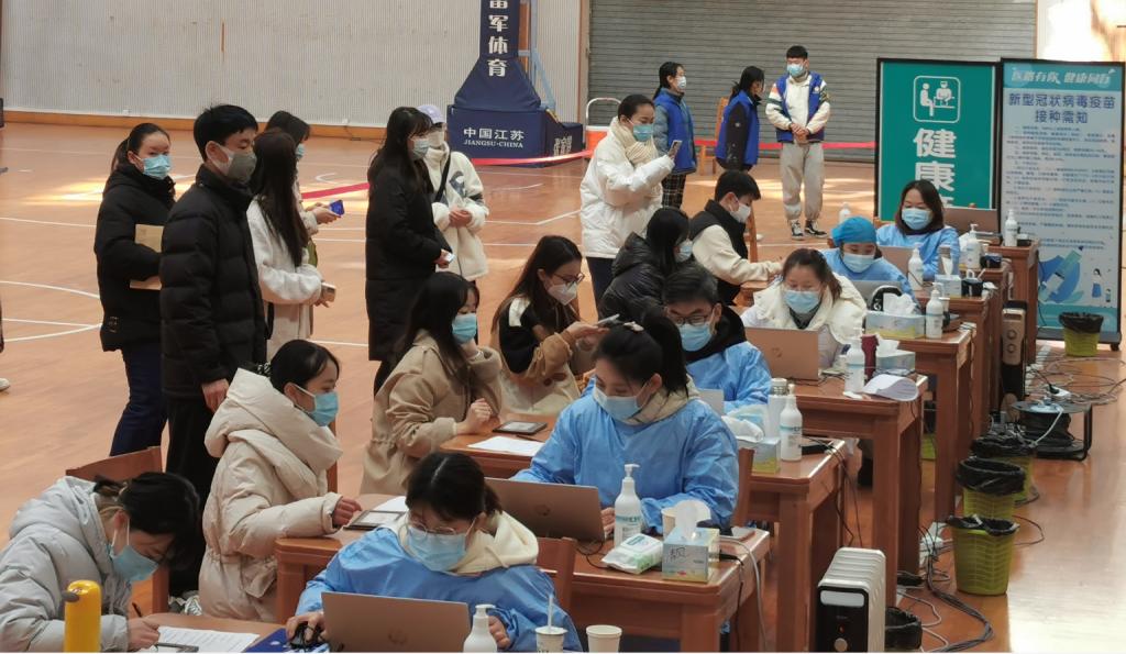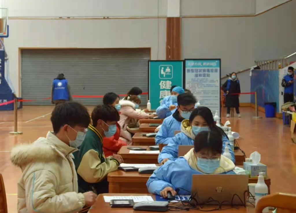 现场,符合接种条件的师生在行健馆东门入口处进行体温检测,在工作人员指导下有序排队进入接种点,按照医务人员指示,进行信息登记、等候接种,接种完毕后在留观区观察30分钟,最后从行健馆西门出口处有序离开接种点。