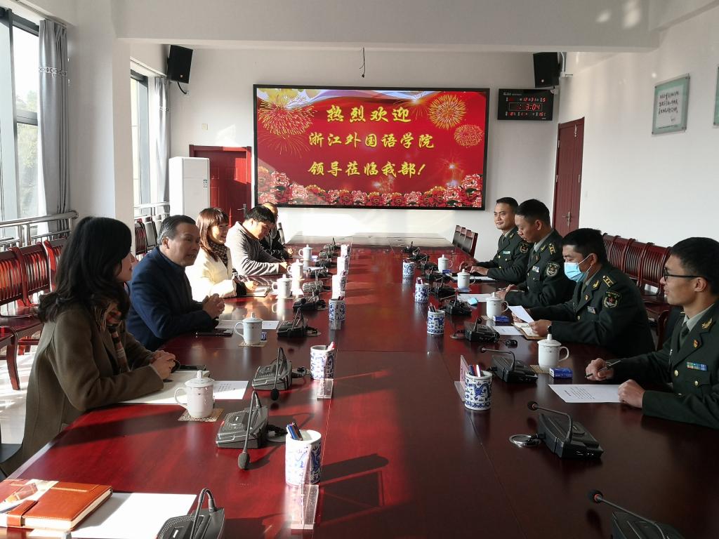 赵文波代表学校向部队全体官兵致以节日的问候和新年的祝福,对部队积极支持开云官网事业发展和国防教育工作表示衷心的感谢。座谈会上,赵文波介绍了学校的基本情况,并表示学校将充分发挥专业特色和优势,为部队文化建设、官兵的理论学习贡献浙外力量。同时,他希望部队官兵多到学校交流指导,加强双方交流和共建,把英雄部队的优良传统和作风带到校园,增强师生的爱国荣军情怀,丰富红色教育形式。