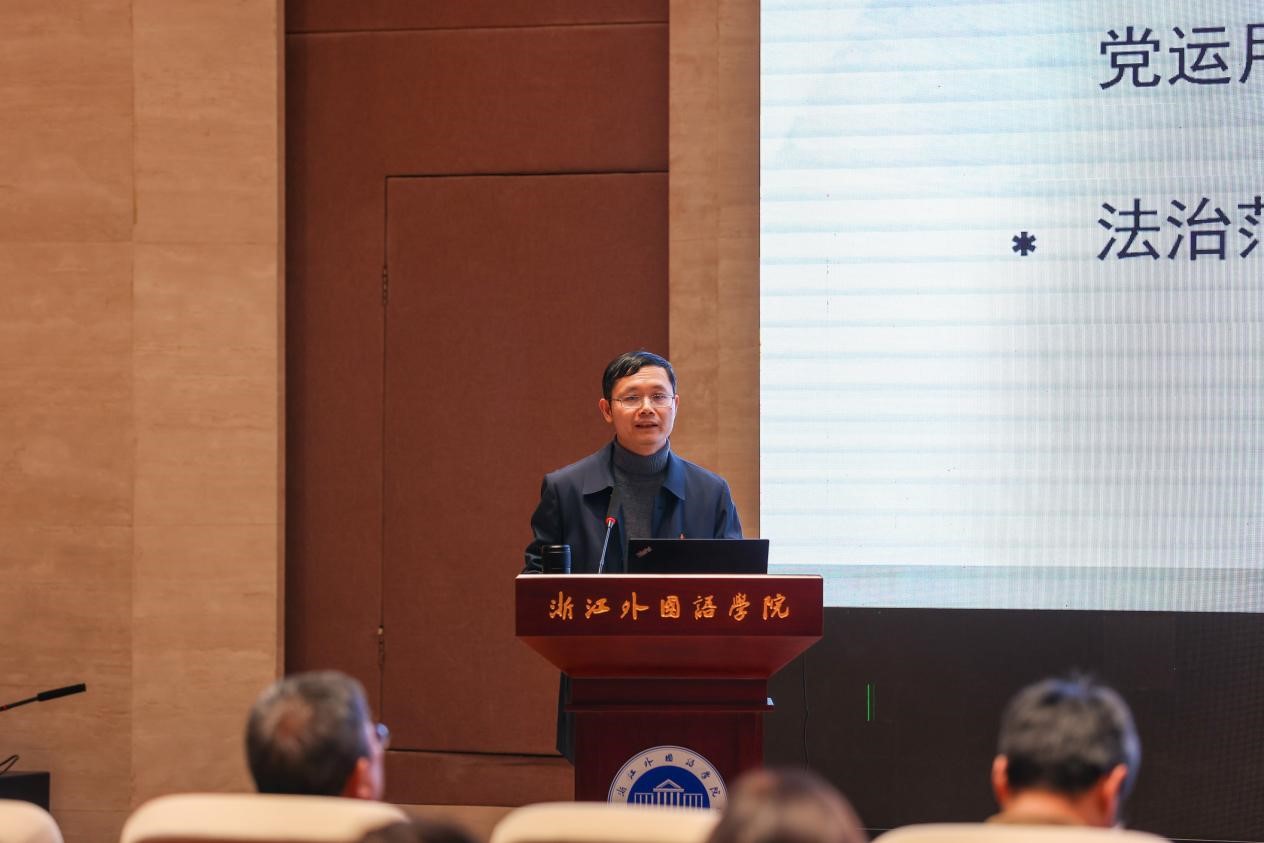 宣讲员、副校长李安以“建设长期执政马克思主义政党的法治贡献”为题,面向中层及以上领导干部、各党支部书记开展宣讲。李安从法治架构、法治功能、法治进程、法治范围四个方面阐释了《中共中央关于党的百年奋斗重大成就和历史经验的决议》中有关法治问题的总结。他指出,新时代中国特色社会主义理论是马克思主义中国化的飞跃,习近平法治思想是马克思主义法学理论的飞跃。他还深入阐释了习近平新时代中国特色社会主义思想法治内涵、习近平法治思想核心观点、依法治国与从严治党的自治与沟通,梳理了习总书记关于建设中国特色社会主义法治体系的最新论述。现场宣讲条理清晰、举例详实、言语生动,呈现了习近平法治思想的丰富内涵及其独特的思想魅力。通过宣讲,领导干部、支部书记更能深刻理解把握习近平法治思想体现的马克思主义理论风范,提高了运用法治思维和法治方式深化改革、推动发展、化解矛盾、维护稳定、应对风险的能力。