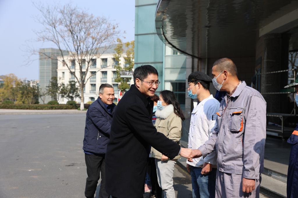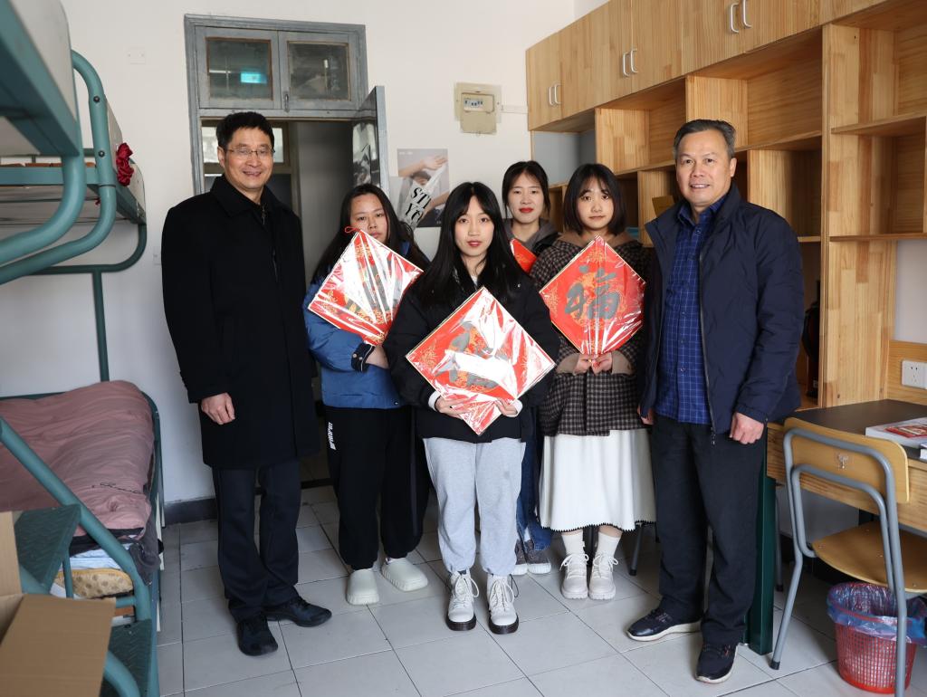 1月31日,正值除夕,咧咧阳光带着浓浓的新春暖意。校长洪岗走访慰问寒假坚守工作岗位的教职工和留校学生,党委副书记赵文波一同慰问。