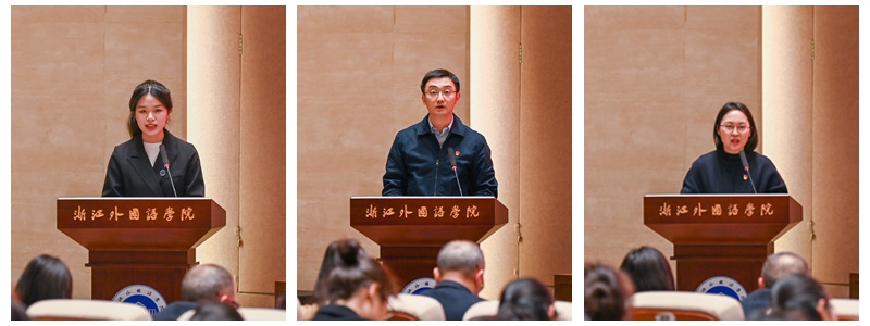 会上,二级单位党组织负责人代表、教师党支部书记代表、学生代表先后作交流发言。