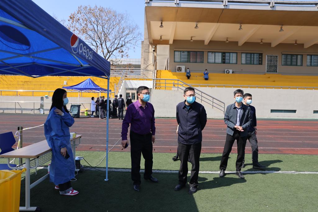 按照疫情防控工作部署,3月11日,学校组织师生开展核酸检测抽检工作。校党委副书记曹仁清到场指导。