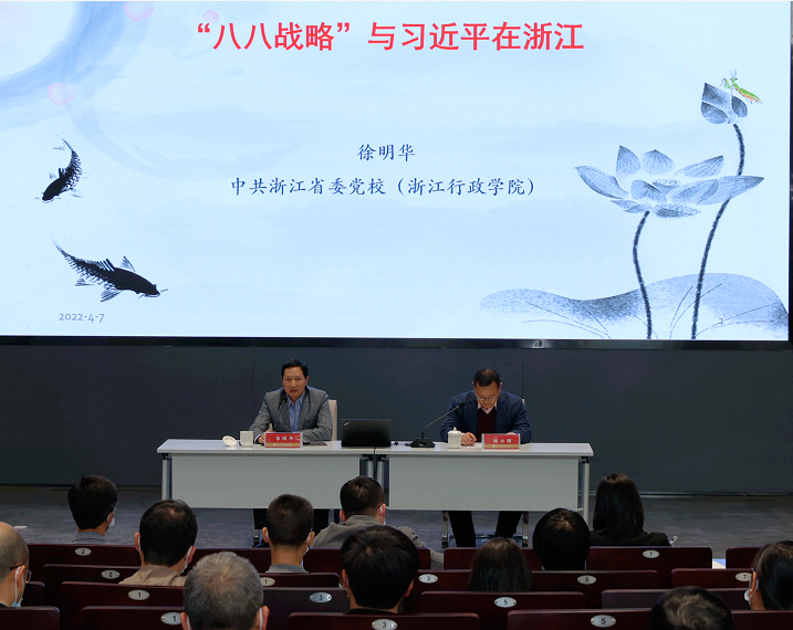 随后,中共浙江省委党校副校长徐明华围绕“习近平新时代中国特色社会主义思想的浙江实践”主题,从“八八战略”的背景、内涵与意义,以及新思想在省域层面的先行探索等方面作专题辅导报告。