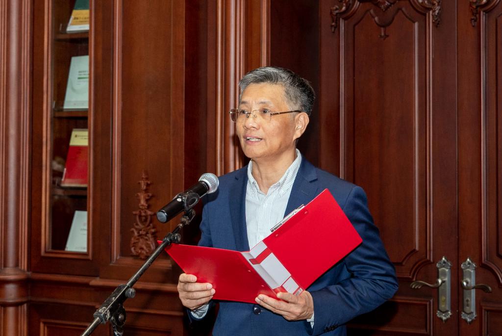 赵文波在主持时指出,学校党委高度重视校园书香文化氛围营造和教师学术发展。浙外学人的笔耕不辍,不仅扩大了学校的学术影响力,也极大丰富了学校的学术宝藏。博雅阁藏书是建设“多元、现代、高雅”校园文化的重要举措,亦是打造学术引领“风向标”,营造“老师爱学生爱学术,学生爱学习爱学校”的氛围的重要抓手。