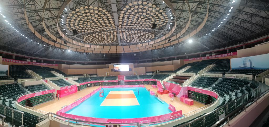 初步完成硬件改造的杭州亚运会德清体育中心排球场馆。