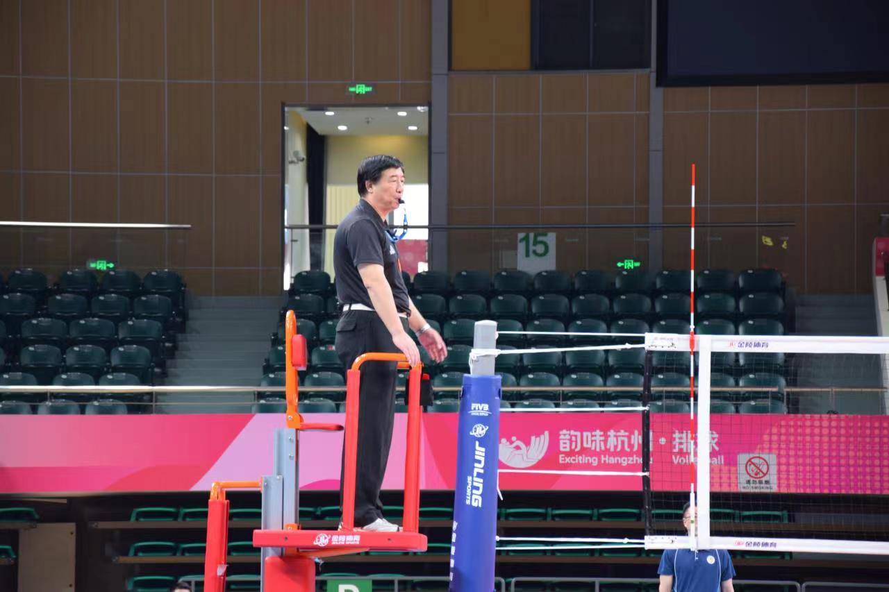 李宁老师作为主裁判在湖州市排球模拟赛现场工作。