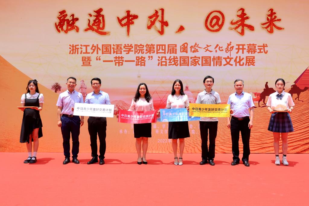 开幕式上还举行了“中日青少年友好交流计划”项目启动仪式,赵文波、毛振华为东语学院,中文学院,艺术学院,“一带一路”学院、华侨学院、国际学院授予“中日青少年友好交流计划”项目专用标识。