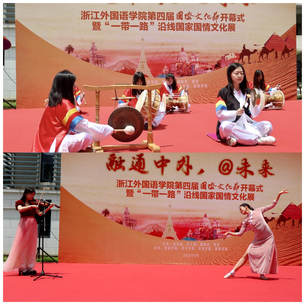 开幕式上,英文学院、东语学院、西语学院的同学们带来了精彩纷呈的文艺表演。风情走秀、小提琴音乐舞蹈、阿拉伯风情舞蹈、韩国《四物乐》、拉丁舞、法语歌曲……精彩的节目表演掀起了活动高潮。