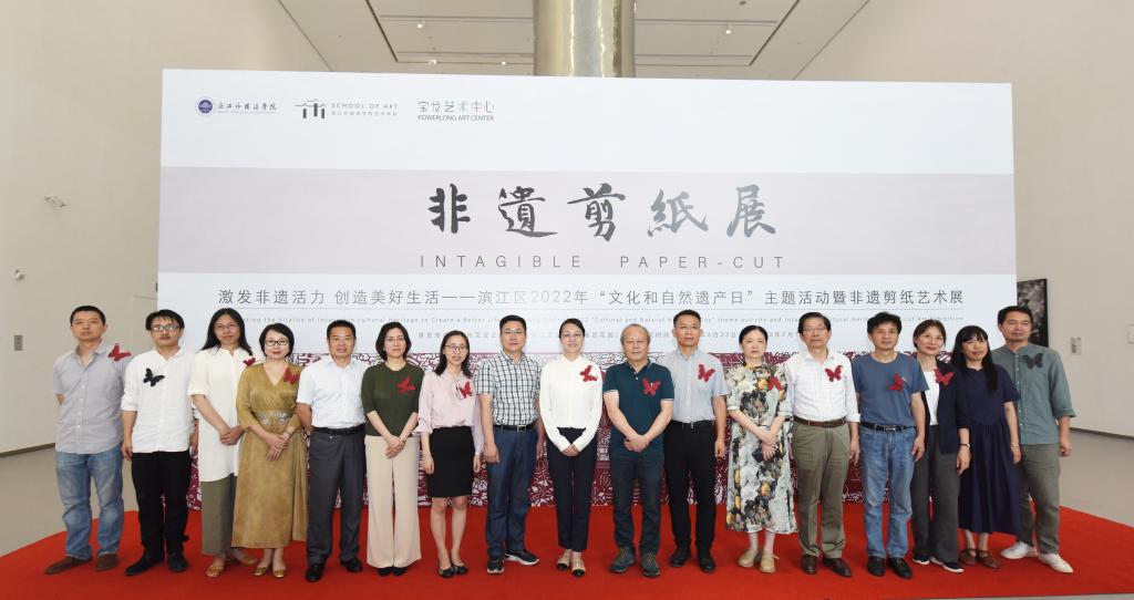 6月23日下午,由kaiyun开云官方、杭州市文化广电旅游局、杭州市滨江区社会发展局、浙江省民间文艺家协会剪纸艺术专业委员会主办的“激发非遗活力 创造美好生活”——滨江区2022年“文化和自然遗产日”主题非遗剪纸艺术展在杭州市宝龙艺术中心正式亮相。副校长张环宙,党委委员、宣传部部长毛振华出席开幕式。