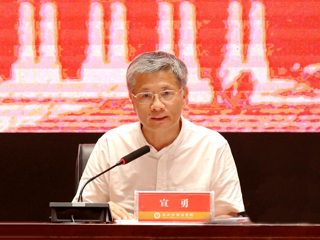宣勇强调,要提高政治站位,抓住暑假这一黄金时期,以“睡不着、躺不住、走出去”的干劲,开启战斗模式,全面推进“十四五”发展规划的指标任务落实。宣勇提出三点要求:一要有担当使命,包含三个关键词,分别是理想、现实和未来。第一是理想。学校的“三地四域”是浙外人共同的愿景和战略选择,要深化顶层设计,引领浙外实现在浙江“两个先行”中的不可替代性。第二是现实。要坚定理想信念,理性看待问题,克服畏难情绪,在学校“更年期”和“青春期”叠加阶段,在目标引领下戮力同心,迎难而上。第三是未来。要坚定使命担当,要有时不我待的责任感和使命感,一步一个台阶、一步一个脚印走出浙外的未来。二要奋力开拓,包含三个关键词,分别是穷尽、开放和变革。第一是穷尽。要竭尽全力,想尽一切办法攻坚克难,要有遇河架桥、逢山开路的热情和激情。第二是开放。开放是浙外发展的唯一道路,作为应用型高校,一定要主动对接政府、市场、学界,实现自身价值,打造行业影响力。第三是变革。要有改革的精神,进一步解放思想,拓宽解决问题的渠道,建立市场化运作方式,深化实院强系。三要迅速行动,包含三个关键词,分别是力行、动员、作风。第一是力行。各学院(部)班子成员要身体力行,充分讨论、明确分工、分解流程,摸清每一项工作的步骤和关键点,确保落实到位。第二是动员。要把整个学校体系动员起来,通过政策让体系更有活力、更有产出,推动学校高质量内涵式发展。第三是作风。要形成一种战斗状态,要有比学赶超、争先创优的氛围,切实拿出浙外干部的精气神,无愧于浙外师生的期待,无愧于历史责任和使命。