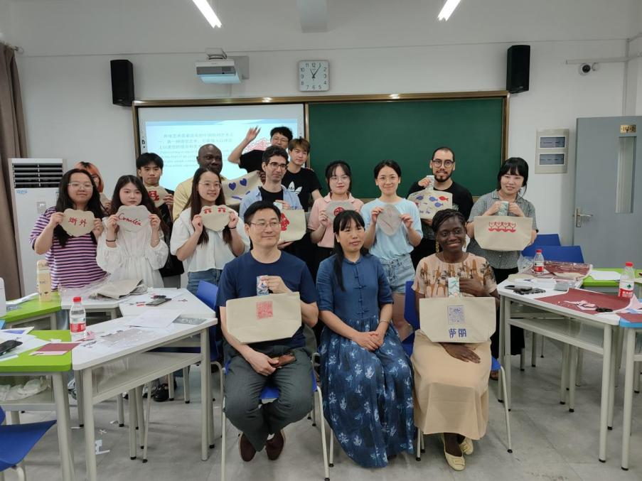 会后,外教们与即将出国(境)学习的学生代表一起体验剪纸艺术。俄语专业的包同学说,她没想到喀麦隆外教还能写得一手好汉字。自己对“福”的解读也得到了外教的认同,合作剪纸的过程让她对下步前往俄罗斯作为中国文化的民间使者充满信心。