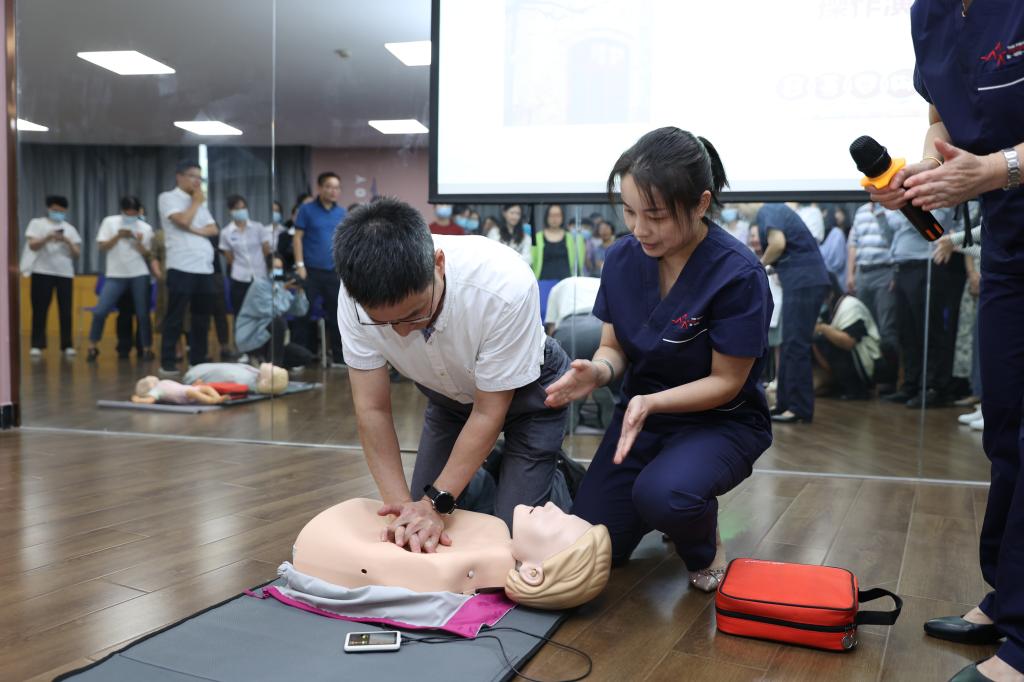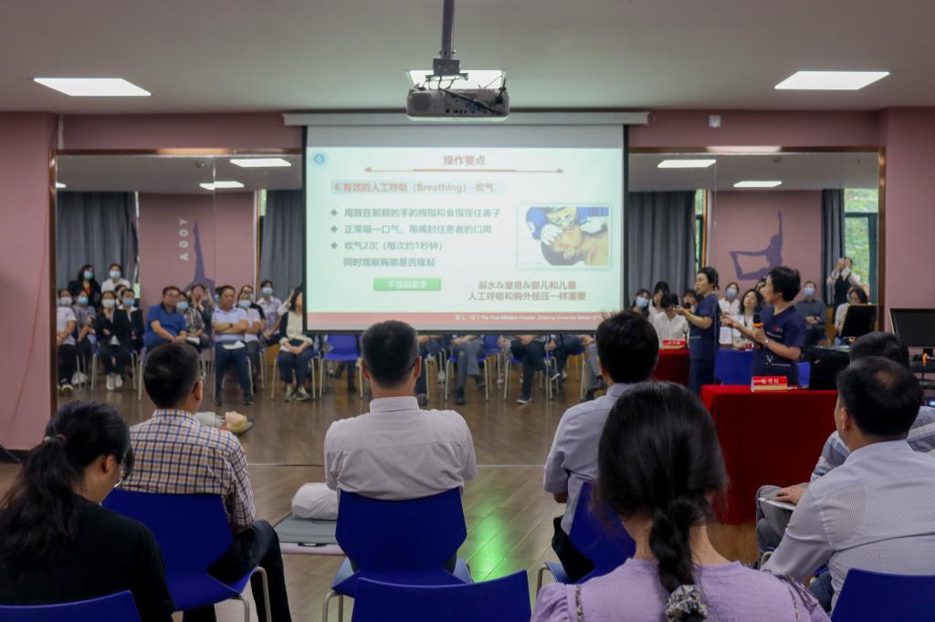 培训会上,赵雪红就心肺复苏术理论及救助不同人群的异同点作了详细的讲解,着重演示了对成人及婴幼儿实施徒手心肺复苏的操作要领,还介绍了海姆立克急救法及自动体外除颤器(AED)的使用方法。
