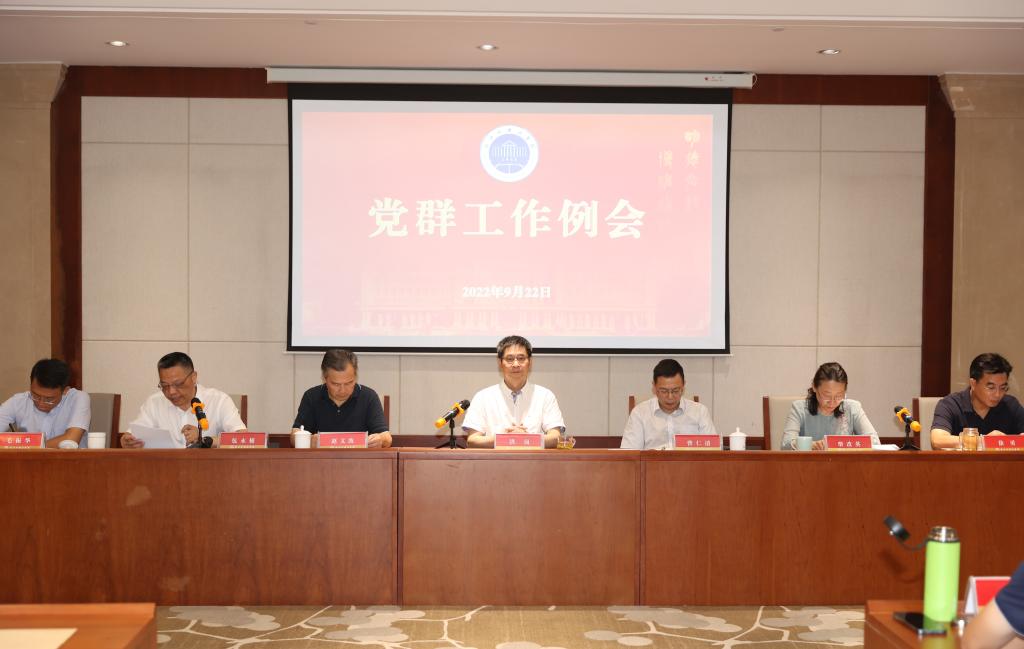 近日,学校召开党群工作例会,会议围绕平安护航党的二十大、做好近期党建工作、推动年度目标任务高质量完成等内容作了相关部署。校长洪岗主持会议并讲话。校党委副书记曹仁清、赵文波,副校长柴改英,纪委书记包永根,副校长、组织部、统战部部长徐勇,党委委员、宣传部部长毛振华等在校党政领导班子成员出席会议。
