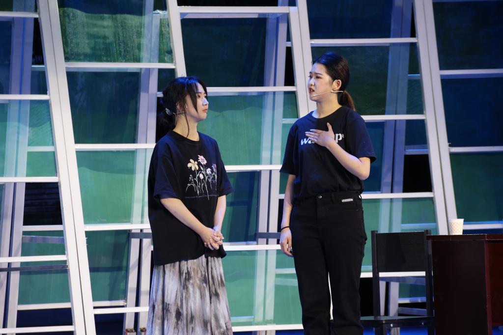 22朝鲜语王炜翔说,话剧中人物的不同人生选择不仅让我对大学生活充满期待,也丰富了我对末来的规划选择。尽管他们“道不同”,但他们的远大目标却是一致的——以自己的方式为国家、为社会贡献力量。我希望能如剧中人一般,努力学习,坚定梦想,成就更好的自己。