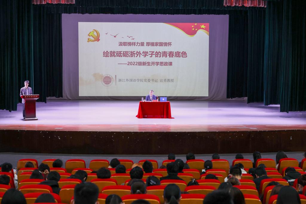 围绕《汲取榜样力量,厚植家国情怀,绘就砥砺浙外学子的青春底色》的主题,宣勇以“青年学子学青年习近平”学习教育为主线,介绍了学校持续深入推进“青年学子学青年习近平”学习教育的特色做法及成效,讲述了浙外学子在“青年学子学青年习近平”学习教育的感召下,以榜样引领绘就青春底色的故事。宣勇鼓励同学们,要持续深入地参与到“青年学子学青年习近平”学习教育中,沿着习近平总书记足迹,牢记习近平总书记嘱托,心怀“国之大者”,勇于担当使命,在实现中华民族伟大复兴中国梦的实践中唱响“我在窗口写青春”的最强音,共同创造强国圆梦、功成有我的青春佳话。