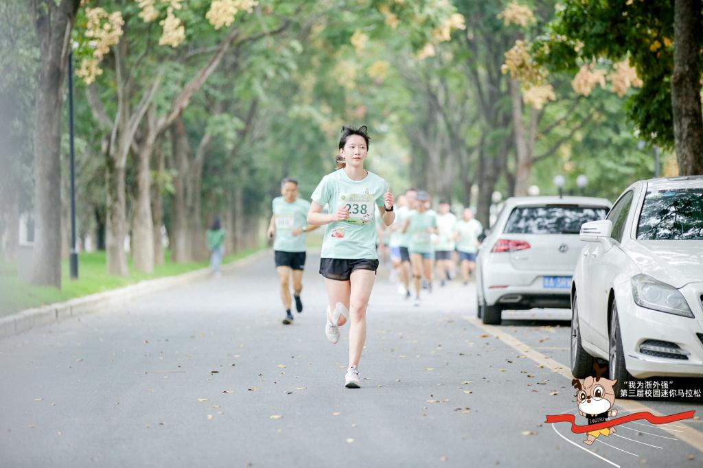 秋风和煦轻柔,丹桂满园飘香。选手们踌躇满志,环绕金秋的美丽校园,以坚韧和毅力致敬体育精神,以昂扬向上的奔跑姿态传递体育正能量。青绿色的“战衣”,飒爽矫健的身影构成了校园靓丽的风景线。男生组第一名、22级电商3班邵俊杰表示,热爱源自于漫长道路上的无限可能,他坚信坚持不懈是克服困难的根本,而能吃苦、肯奋斗就是新时代青年的必备品质。女生组第一名、20级口译1班顾逸凡表示,“迷马”考验身体素质、磨练人格意志,从中她深切体会到循序渐进与坚持的意义,也更坚定了她逐梦的信念。值得一提的是,本届迷你马拉松比赛中还加入了许多“跑团”。一群热爱运动的商学院学生组成了人数最多的跑团。“这是我们第一次组团参赛,共同的热爱让我们变得更加团结,更跑出了浙外学子的风采。”21级会计1班李恒宇如是说。