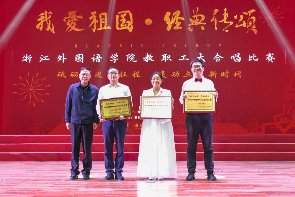 “唱支山歌给党听,我把党来比母亲……”展演在英文学院优美的合唱声中拉开帷幕。《保卫黄河》《没有共产党就没有新中国》《我们走在大路上》《国家》《不忘初心》《领航》……或铿锵有力,或深情婉转,来自全校的15支教职工代表队用经典作品讲述中国共产党带领中华民族和全国人民不懈奋斗,从站起来、富起来到强起来的光辉历程和壮阔历史。参赛队伍还昂扬唱响《浙外校歌》,充分展现浙外人在党的二十大精神的引领下,以时不我待、只争朝夕的精气神,扛起使命担当,努力将学习成果转化为推动学校各项事业高质量发展和中国式现代化在浙外生动实践的坚定信念。