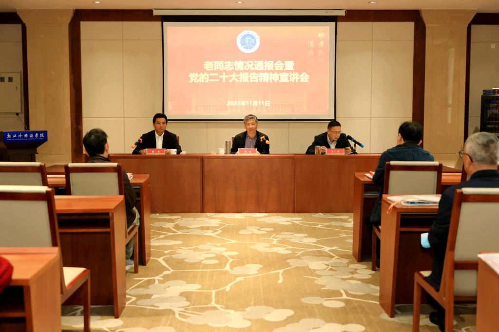 近日,学校召开老同志情况通报会暨党的二十大精神宣讲会。校党委书记宣勇向老同志通报学校事业发展情况。党委副书记曹仁清作宣讲。副校长、组织部、统战部部长徐勇出席会议。
