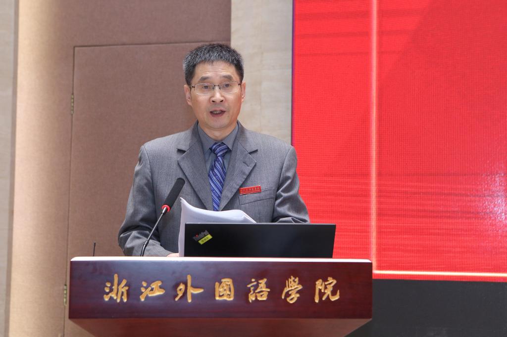 洪岗在致辞中指出,学校紧紧围绕国家和浙江发展大局,狠抓重大机遇与战略谋划,以培养德智体美劳全面发展的具有家国情怀、国际视野的高素质应用型人才为目标,坚持把立德树人贯穿人才培养全过程。为打好铸魂育人主动仗,学校将“青年学子学《习近平谈治国理政》”与“青年学子学青年习近平”相贯通,唱响铸魂育人主旋律;六措并举,建强铸魂育人主力军;进立建守,立足铸魂育人主战场;建设教学资源,守牢铸魂育人主阵地。学校夯实传声立言学术力,锻造传声立言后备军,当好传声立言排头兵。经过一年多的探索与实践,学校在“教材建设、课程建设、科学研究、实践教学、学科竞赛、对外传播”等方面取得了良好成绩。