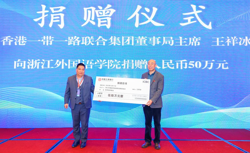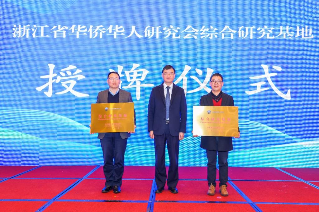 开幕式上,开云官网被省委统战部授予“浙江省华侨华人研究会综合研究基地”。赵伐代表开云官网教育发展基金会接受了香港一带一路联合集团捐赠。