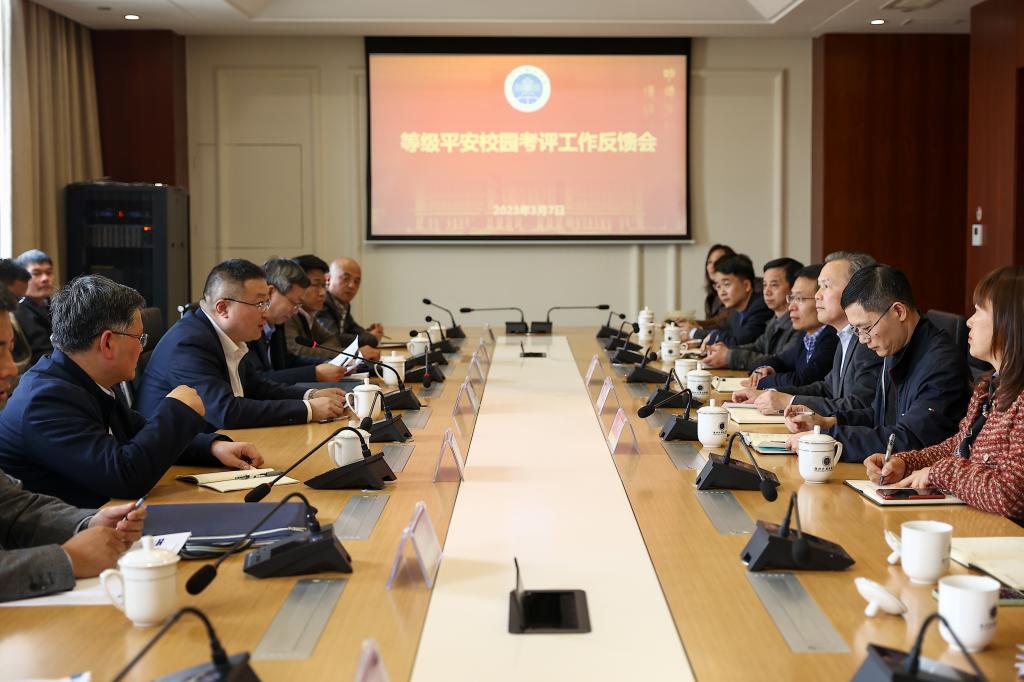 3月7日,浙江省等级平安校园考评专家组组长姜宇国一行来校开展等级平安校园考评工作。校党委副书记曹仁清主持汇报会,党委副书记赵文波汇报平安校园建设工作,副校长李安、柴改英,纪委书记包永根出席。
