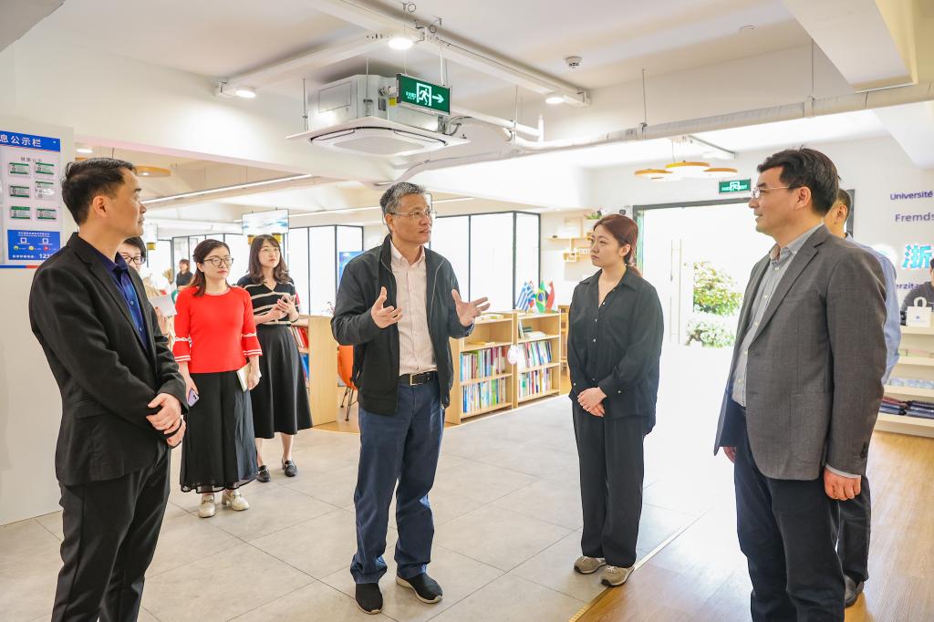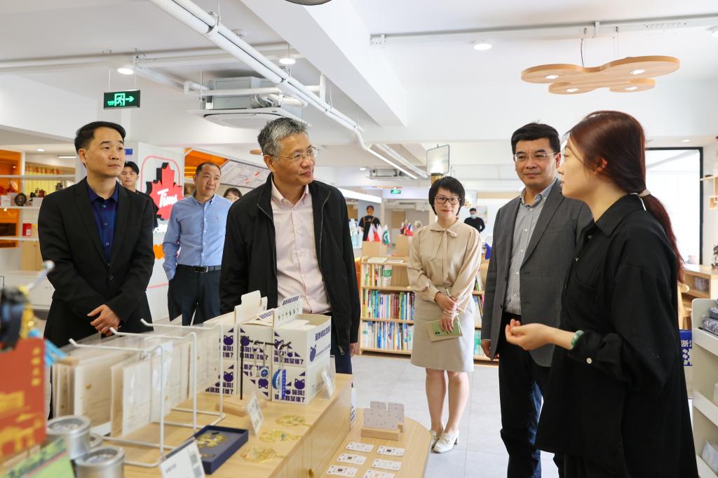 宣勇一行还调研了近期开放的“和山印象”文创空间,并就更好发挥校园公共空间育人功能作出指导。“校名产品是让学生、校友终身纪念的东西,毕业季要到了,要了解毕业生最想从母校带走什么,发挥好学生团队的创意。”“中国的茶文化是开展国际交流的好载体,可以贯通学生实践,提升学生素养。”来到博雅书院区,一阵悦耳的古筝声吸引大家驻足欣赏。“平常经常来这里弹奏吗?这个爱好要继续保持下去,这也是一种中国语言。”宣书记亲切鼓励,弹奏古筝的土耳其语专业学生也表示将以琴会友,讲好中国故事。在山区26县共富产品区,C位摆放的正是开云官网结对帮扶点泰顺县的农产品“辣椒酱”。宣书记详细了解了泰顺“多彩辣椒”项目以及“家门口的夏令营”学生实践活动,指出要有机融合共富产品、非遗文创、文旅研学等,让师生的脚步行走在共富的大地上。