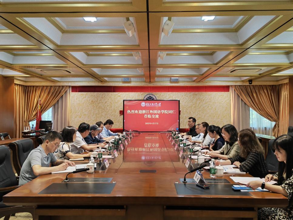 近日,副校长柴改英带队赴广东外语外贸大学调研。会前,广东外语外贸大学副校长何传添会见了柴改英一行,并就学科建设、人才培养等交换了意见。