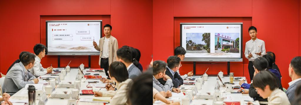 “‘八八战略’是在大量调查研究基础上形成的推进浙江新发展的思考框架,是践行调查研究的典范。”“‘八八战略’站得高、看得远、想得深、做得实,不仅为浙江省域现代化指明了方向,也为全国其他地区的发展提供了范本。”“‘八八战略’是辩证地看优势与短板、综合地讲问题与举措,它与‘四个全面’战略布局都贯穿着鲜明的问题意识、系统观念、发展导向、人民立场”……在学习会现场,马院欧万彬等青年教师通过“六分钟精讲”,从浙江实践解析“八八战略”的时代价值,对习近平新时代中国特色社会主义思想进行了生动的学理阐释。