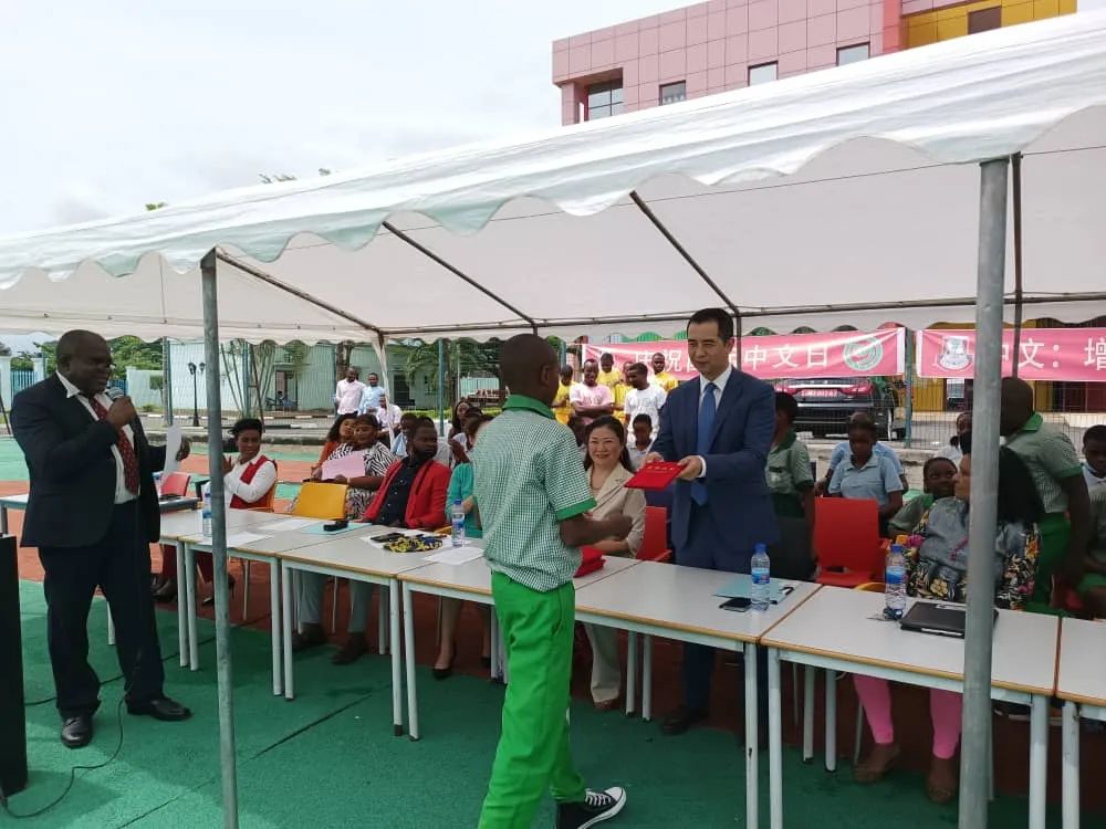 赤几迦尼赫多语种学校小学部、中学部负责人和安巴国家图书馆负责人,以及两所孔院中外方院长、本土志愿者教师、当地中小学师生等共500余人参加活动。