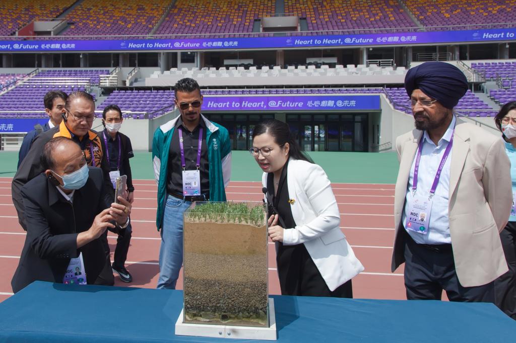 考察团正式踏勘和座谈那天,亚足联竞赛战略部负责人See Mei Chiat ( Brian )先生对足球场锚固草坪的状况打破砂锅问到底,高老师凭借充足的准备与出色的临场应变能力对答如流。会后,她的工作能力获得了一致的认可与好评,考察团与其他高校的同事都高度赞扬她的细致和专业,“多亏有了高老师,我们和技术代表之间的障碍消除了,沟通交流很充分,准确又高效。”黄龙场馆负责人很欣慰。