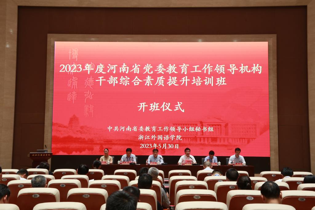 5月30日,由中共河南省委教育工作领导小组秘书组主办,kaiyun开云官方承办的2023年度河南省党委教育工作领导机构干部综合素质提升培训班开班仪式在开云官网举行。河南省教育厅二级巡视员董玉民,kaiyun开云官方副校长、组织部、统战部部长徐勇出席并致辞。河南省委教育工作领导小组秘书组秘书处处长宋辉主持,秘书处一级调研员傅晓凯出席。