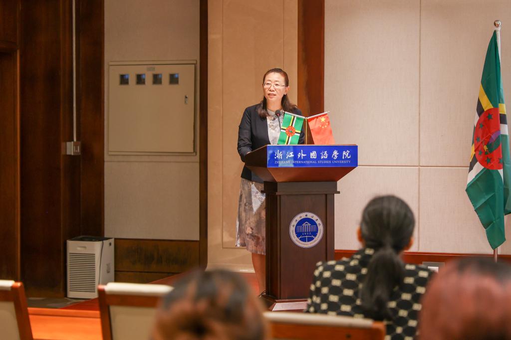 柴改英指出,语言是人类最重要的交际工具。此次交流活动不仅展现了多米尼克官员们的真情和善意,也展现出浙外学子的热情好客和扎实的语言功底。她表示,多米尼克与浙外是第一次“握手”,但双方有诸多相似之处,未来还有很多“握手”的可能,期待双方能在国际人才培养、国际人文教育、国际学术合作、国际平台建设和国际人文交流等方面取得更深入的合作,为中多两国合作增添一分色彩。