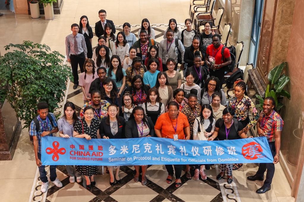 6月7日,来自多米尼克政府、学校和酒店等多行业的处级官员组成的礼宾礼仪研修班来校交流。副校长柴改英出席活动并致辞。